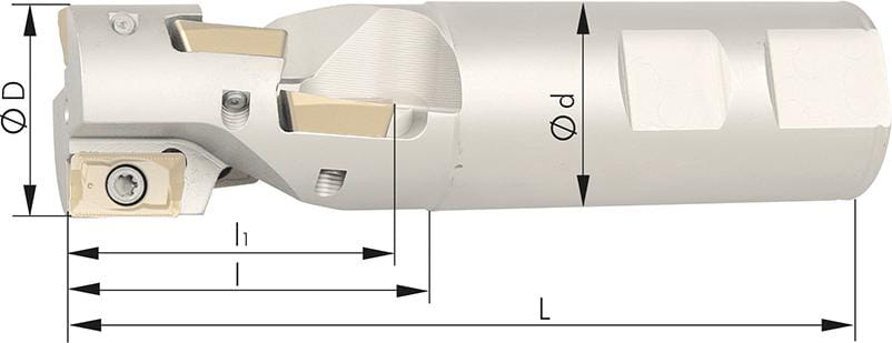 Frez walcowo-czołowy 90°, 2-ostrz., z chłodz.wewn., chwyt cylindryczny D25mm do APKT10