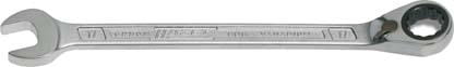 Wykonanie: ze stali chromowo-wanadowej, chromowany matowo. Precyzyjnie uzębiony mechanizm grzechotki z 72 zębami i kątem roboczym 5°. Głowica grzechotkowa jest odgięta kątowo o 13°, odchylenie szczęk 15°.Rozmiar klucza:22 mm