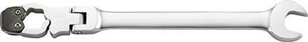 Wykonanie: ze stali chromowo-wanadowej, chromowana matowo. Odchylenie osi szczęk 15°, strona z oczkiem ze specjalnym profilem sześciokątnym. Stronę z oczkiem można otworzyć i przyłożyć do nakrętek w zemkniętych układach. Mechanizm sprężysty pozwala na pracę porównywalną z grzechotką. Dzięki przegubowi główka jest odchylana.