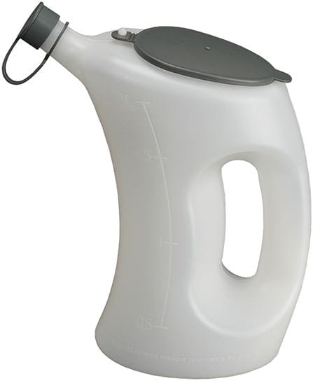 Wykonanie: Zbiornik z polietylenu (HDPE) o dużej gęstości, z pokrywą, lejkiem wylewowym i podziałką.