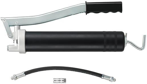 Wykonanie: DIN 1283. Ze stali, ocynkowana, do użytku z dużymi obciążeniami, grubość ścianek 1 mm. Uruchomienie tłoka uchwytem L. Kołnierz ze szczelnym osadzeniem w przypadku stosowania smaru stałego luzem lub naboju. Tłok pompy z wysoką dokładnością dopasowania do cylindra (bez smarowania pozornego). Nadaje się do nabojów smarowych 400 g zgodne z normą DIN 1284, urządzenia do napełniania smarem lub smaru luzem. Zestaw zawiera wąż pancerny M10 x 1, 11 x 300 mm i nasadkę, 4 BA, M10 x 1.