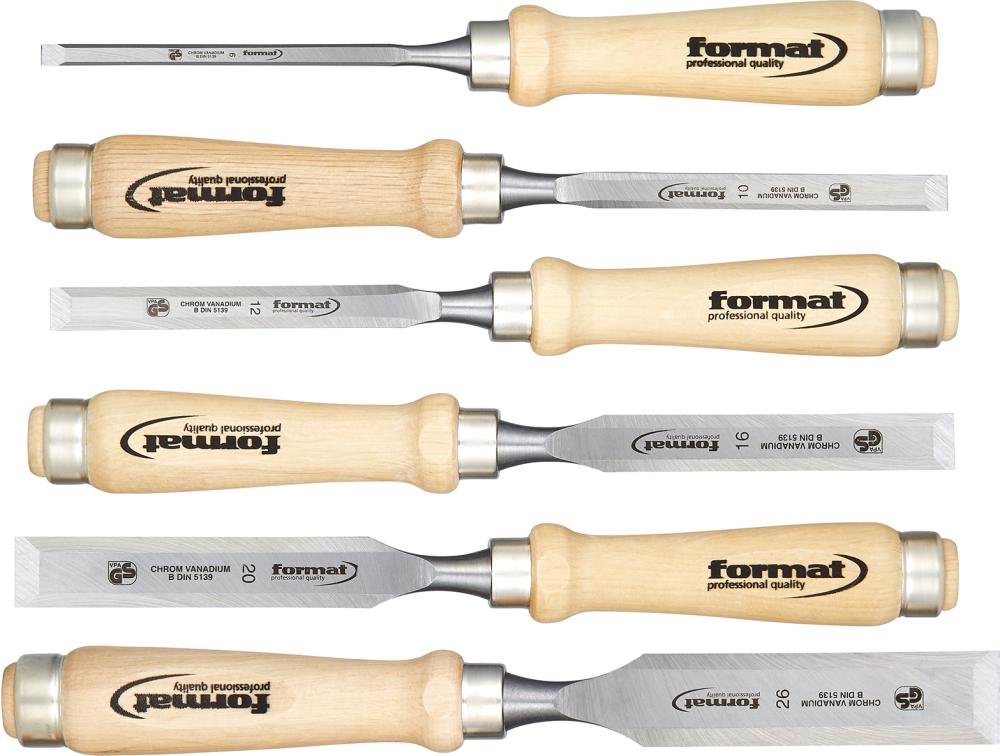 Zestaw dłut płaskich z rękojeścią drewnianą, 6-częściowy FORMAT