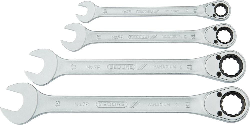 Zestaw kluczy płaskich z grzechotką pierścieniową, 4-częściowy GEDORE