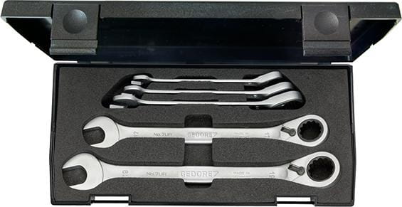 Zestaw kluczy płaskich z grzechotką pierścieniową, przełączalną, 8-19mm, 5-częściowy GEDORE