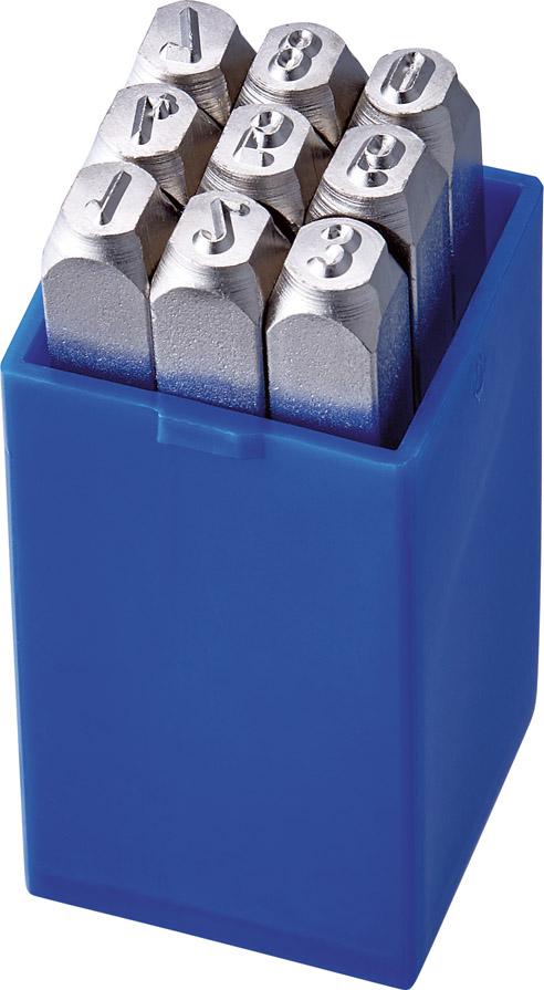 Wykonanie: 9-częściowy (0–9). Ze specjalnej stali narzędziowej wysokiej jakości, czcionka zgodnie z normą DIN 1451. Dostawa zestawu w pudełku z tworzywa sztucznego.